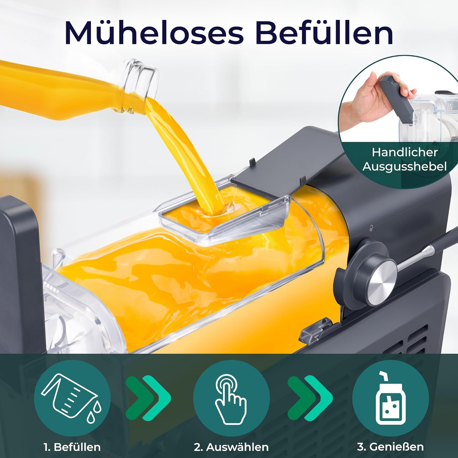 Das Abfüllen erfolgt ganz einfach per Hebel – ähnlich wie beim Bierzapfen – und sorgt für echtes Slushbar-Feeling.