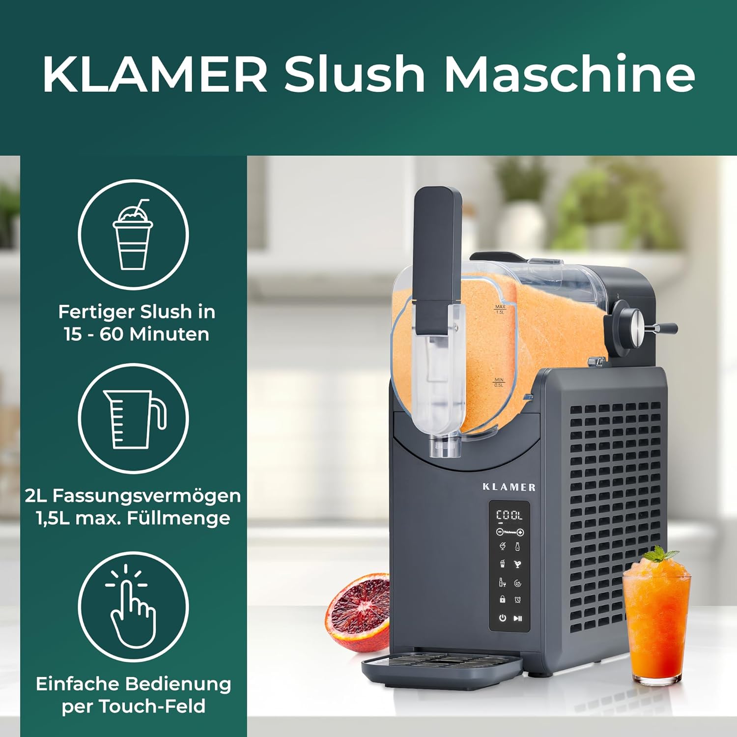 Das Beste: Alle Rezepte sind speziell auf die KLAMER Maschine abgestimmt und gelingen dank der voreingestellten Programme ganz unkompliziert. Das vollständige Rezeptbuch steht kostenfrei unter KLAMER Slush Rezeptbuch (PDF) bereit.