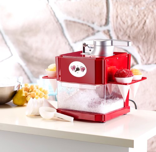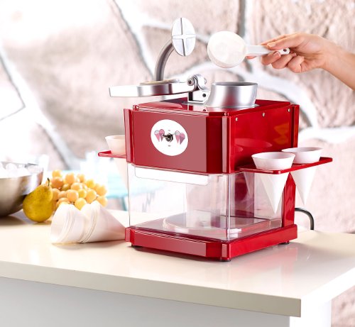 Jede Portion Shaved Ice – jeder „Snow Cone“ – ist individuell. Dank seiner luftigen Struktur saugt das Wassereis den Sirup vollständig auf. Freuen Sie sich auf Regenbogen-Eis und viele andere bunte Sirup-Kunstwerke. Unendlich viele Geschmacks-Variationen und Farben, direkt vor dem Verzehr frisch zubereitet. Das kann nur ein Slush Maker! Und das Beste: Der Ice Maker bleibt immer sauber. Sie brauchen ihn nach dem Gebrauch nur trocknen zu lassen – denn alles, was vom Eis übrigbleibt, ist klares Wasser. Perfekt für Ihre Garten-Party oder den nächsten Kindergeburtstag!